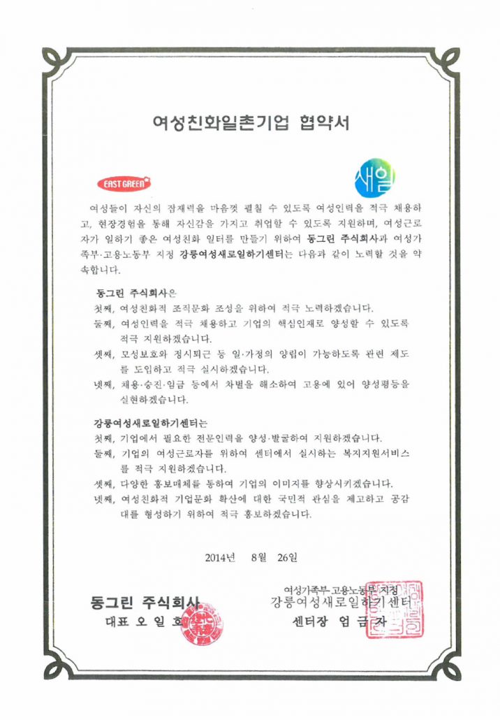 여성친화 기업 인증서