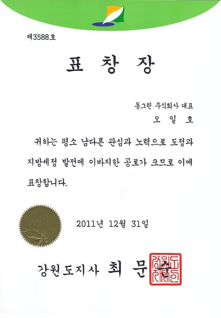 강원도지사 표창장